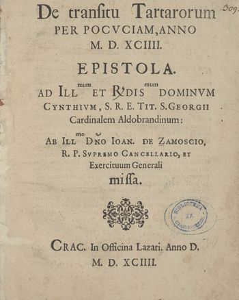 De transitu Tartarorum per Pocvciam, anno M. D. XCIIII: