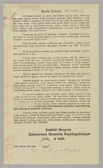 | Instytucja sprawcza: | Zjednoczenie Stronnictw Niepodległościowych - Komitet Okręgowy |