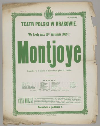 | Inne tytuły: | Komedya w 5 aktach z francuskiego przez O. Feuillet we środę dnia 15go września 1869 r. Montjoye |