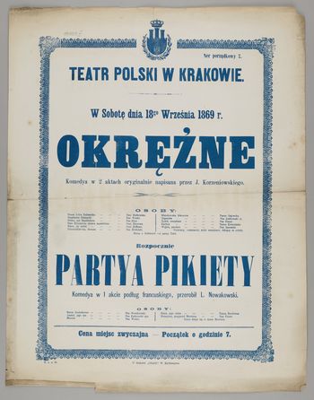 w sobotę dnia 18go września 1869 r. Okrężne Komedya w 2 aktach oryginalnie napisana przez J. Korzeniowskiego ...