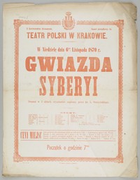 | Inne tytuły: | Gwiazda Syberyi dramat w 3 aktach, oryginalnie napisany przez hr. L. Starzeńskiego |