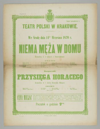Teatr Polski w Krakowie we środę dnia 14go września 1870 r.