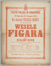 | Inne tytuły: | komedya w 5 aktach, przez Beaumarchais, świeżo przełożona z francuskiego dla Teatru Krakowskiego śpiewy, muzyka i tańce na dochód Feliksa Bendy po raz pierwszy Wesele Figara czyli szalony dzień |