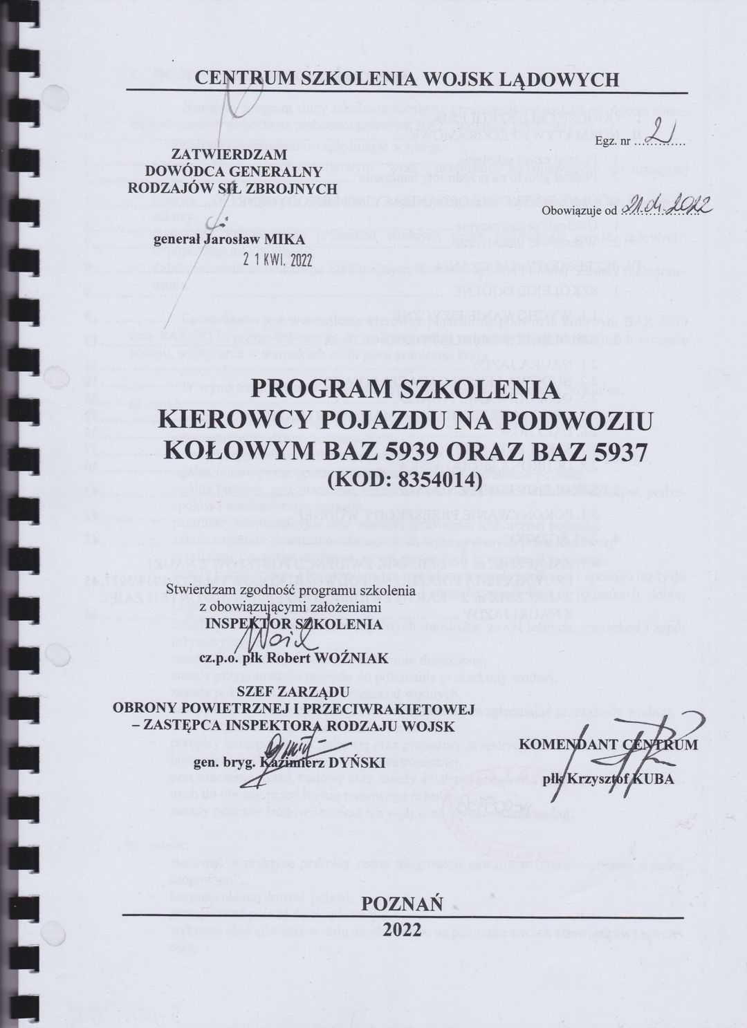 Program szkolenia kierowcy pojazdów na podwoziu kołowym BAZ 5939 oraz BAZ 5937: