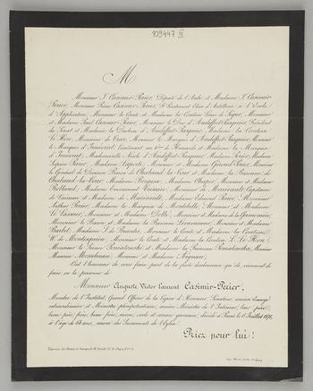 [Nekrolog. Incipit] M Monsieur J. Casimir-Perier [...] Monsieur Auguste Victor Laurent Casimir-Perier, Membre de l'Institut, [...]