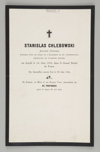 [Nekrolog. Incipit] Stanislas Chlebowski Artiste Peintre, [...]