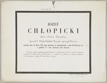 [Nekrolog. Incipit] Józef Chłopicki Baron Państwa Francuzkiego, jenerał b. Wojsk Polskich, [...]