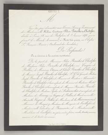 [Nekrolog. Incipit] M Vous êtes prié d'assister aux Convoi, [...] Mademoiselle Hélène-Constance-Fèlicie Boreiko de Chodzko [...]