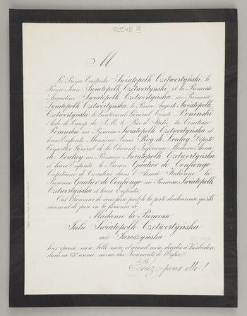 [Nekrolog. Incipit] M Le Prince Eustache Swiatopołk Czetwertyński [...] Madame la Princesse Julie Swiatopołk Czetwertyńska née Jaroszyńska, leur épouse [...]