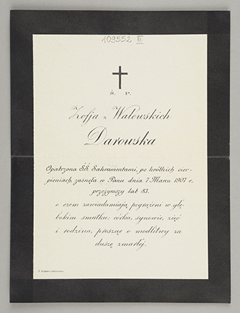 [Nekrolog. Incipit] Ś. P. Zofja z Walewskich Darowska opatrzona Ś. Ś. Sakramentami [...]