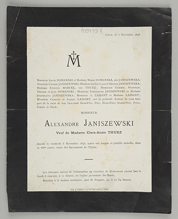 [Nekrolog. Incipit] Monsieur Louis Domański et Madame Marie [...] Monsieur Alexandre Janiszewski Veuf de Madame Clara-Anaïs Thuez, [...]