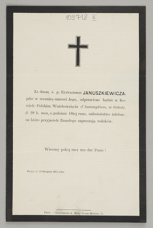 [Nekrolog. Incipit] Za duszę ś. p. Eustachego Januszkiewicza [...]