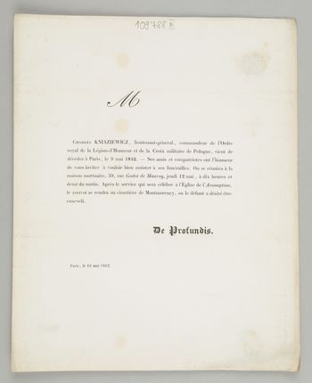 [Nekrolog. Incipit] M Charles Kniaziewicz, lieutenant-général, [...]