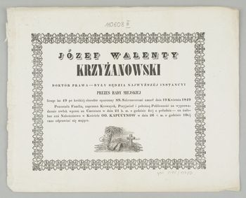 [Nekrolog. Incipit] Józef Walenty Krzyżanowski Doktór Prawa [...]