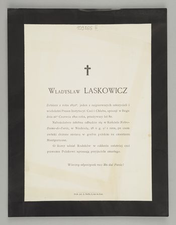 [Nekrolog. Incipit] Władysław Laskowicz Żołnierz z roku 1831go, jeden z najpierwszych założycieli i wieloletni Prezes Instytucji Czci i Chleba, spoczął [...]