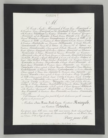 [Nekrolog. Incipit] M Le Comte André Mniszech, [...] Madame Anne-Marie-Barbe-Louise, Comtesse Mniszech, née Comtesse Potocka, leur épouse [...]