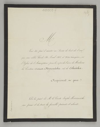 [Nekrolog. Incipit] M Vous êtes prié d'assister [...] Comtesse Antoinette Moszczeńska née de Sobańska, [...]