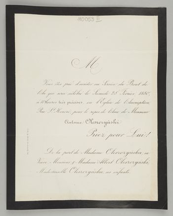 [Nekrolog. Incipit] M Vous êtes prié d'assister [...] Monsieur Antoine Oleszczyński, [...]