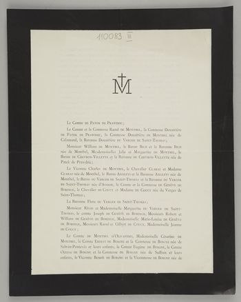 [Nekrolog. Incipit] M Le Comte der Patek de Prawdzic, [...] Madame Philiberte-Julie-Marie-Valentine de Montbel, Comtesse de Patek de Prawdzic, leur épouse [...]