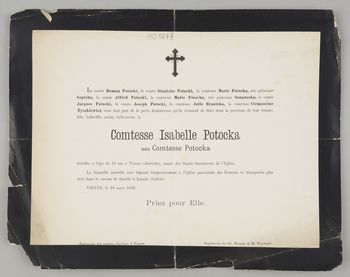 [Nekrolog. Incipit] Le Comte Roman Potocki, [...] Comtesse Isabelle Potocka née Potocka [...]