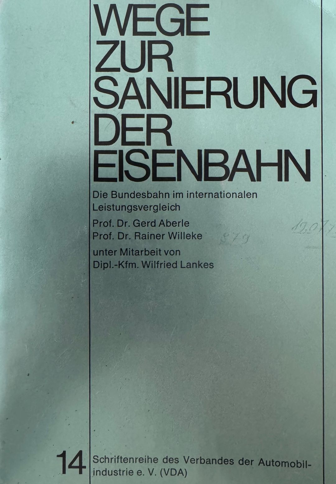 Wege zur sanierung der eisenbahn. Die Bundesbahn im internationalen Leistungsvergleich. Schriftenreihe des Verbandes der Automobilindustrie e.V. (VDA). Nr.14