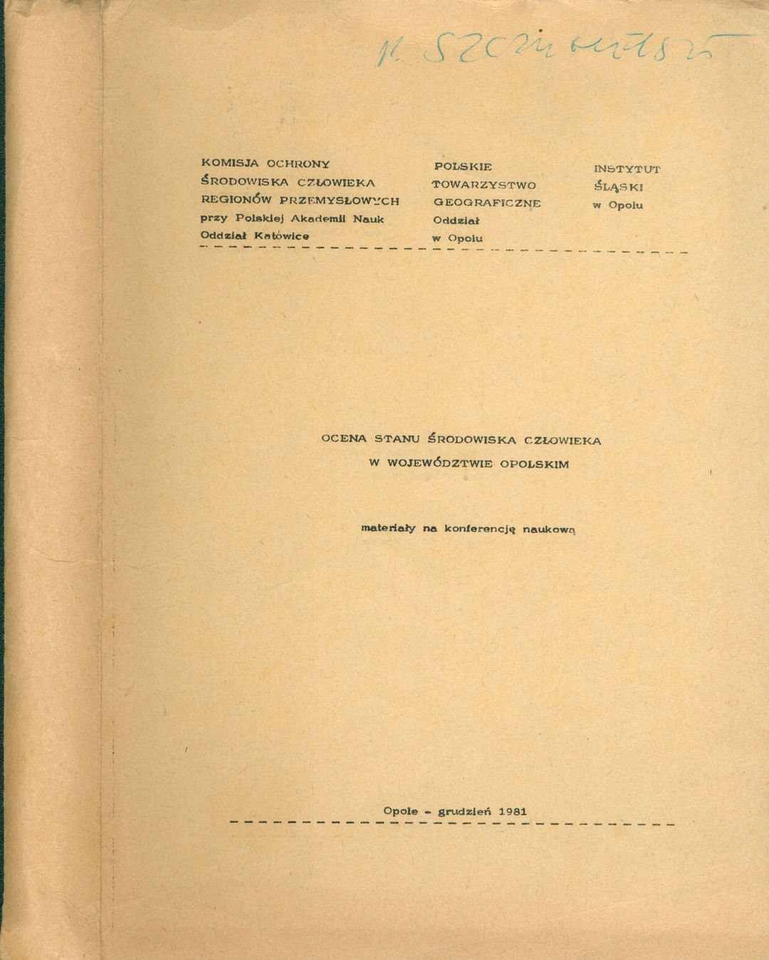 | Instytucje sprawcze: | Komisja Ochrony Środowiska Człowieka Regionów Przemysłowych przy PAN Oddział Katowice Oddział w Opolu Instytut Śląski |
