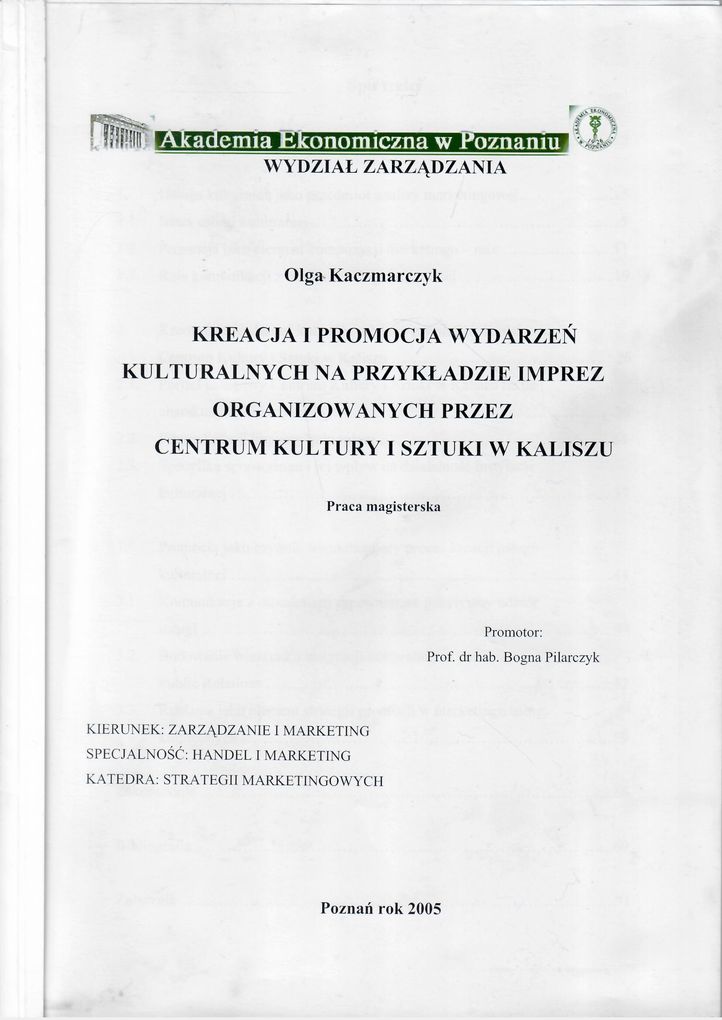Kreacja i promocja wydarzeń kulturalnych na przykładzie imprez organizowanych przez Centrum Kultury i Sztuki w Kaliszu