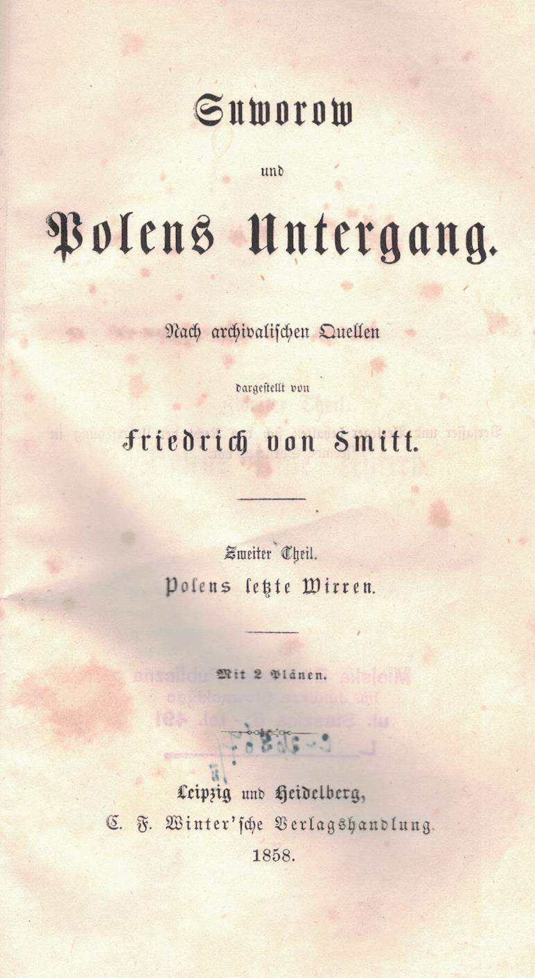 | Inne tytuły: | Suworow und Polens Untergang T. 2, |