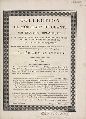 | Serie wydawnicze: | Collection de morceaux de chant Collection de morceaux de chant, airs, duo, trio, romances, etc. Extraits des oeuvres des plus célèbres auteurs [...] avec paroles françaises, le tout arrangé pour piano ou harpe et quelquefois pour piano [...] |