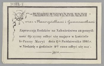 | Inne tytuły: | Zapraszają Rodaków na nabożeństwo za pomyślność Ojczyzny [...] |