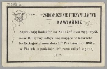 | Inne tytuły: | Zapraszają Rodaków na Nabożeństwo za pomyślność Ojczyzny [...] |