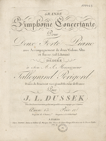 | Inne tytuły: | Oeuvre 63 pour deux forte-piano avec accomp. de deux violons, alto et basse (ad libitum) |