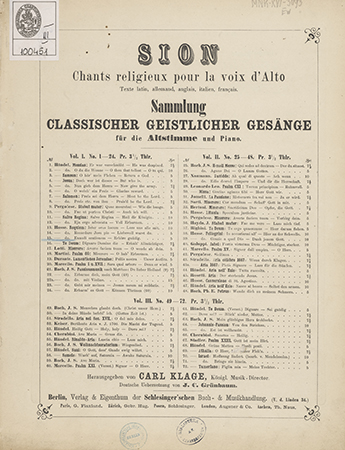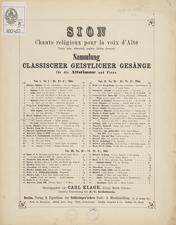 | Wydane w seriach: | Sion Chants religieux pour la voix d'Alto Sammlung classischer geistlicher Gesänge für die Altstimme und Piano |