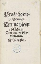 | Inne tytuły: | Druga pieśn o S. Duchu. Veni creator Spiritus.etcet. I Psalm xlvi Veni creator Spiritus |