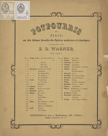 | Wydane w seriach: | Potpourris pour piano Potpourris pour piano sur des thêmes favorits des opéras et classiques arrang. par E. D. Wagner |