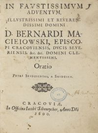 In Favstissimvm Adventvm, Illvstrissimi et reverendissimi Domini D. Bernardi Macieiowski, Episcopi Cracoviensis, Dvcis Severiensis. etc. etc. Domini Clementissimi, Oratio