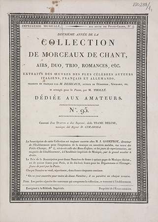 | Wydane w seriach: | Collection de morceaux de chant airs, duo, trio, romances,etc arrangé pour piano ou harpe par Thollé extraits des oeuvres [...] avec paroles françaises |