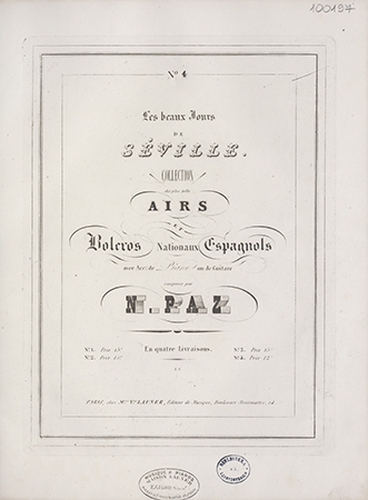 | Inne tytuły: | Collection des plus jolis Airs et Boleros Nationaux Espagnols avec Acc.t de Piano ou de Guitare en quatre Livraisons |