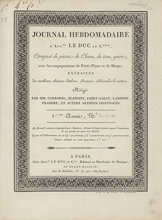 | Inne tytuły: | avec accompagnement de forte-piano et de harpe composé de pieces de chant de tour genre |