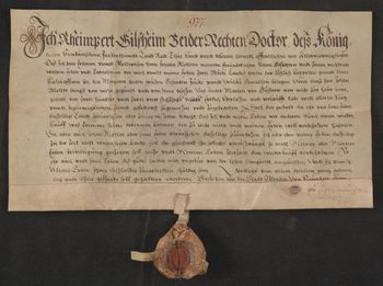 Reimpert Gilsheim doktor obojga praw starosta dyneburski [?] (des Königlichen Oberdünischen Fürstentums Landrat) sprzedaje Janowi Mollerowi dwa kawałki ziemi znajdujące się pod zamkiem Koppelen i Kalckoffenn za 262 marki, zastrzegając sobie i swoim sukcesorom prawo pierwokupu