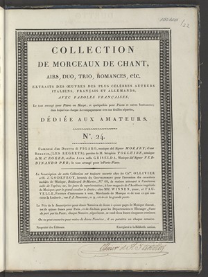 | Wydane w seriach: | Collection de morceaux de chant airs, duo, trio , romances,etc arrangé pour piano ou harpe extraits des oeuvres [...] avec paroles françaises |