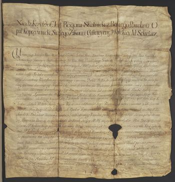 Krzysztof Bogoria Skotnicki opat klasztoru Cystersów w Koprzywnicy, sekretarz królewski daje Franciszkowi Kochańskiemu i jego sukcesorom prawo dożywocia na wójtostwie sulowskim (należącym do stołu opackiego), które tenże trzymał w dzierżawie za 1200 zł; ponadto dodaje mu jednego chłopa z gruntem i chałupą, zezwala na prowadzenie remontów do sumy 2 tysięcy zł oraz wolnego warzenia piwa na własny użytek