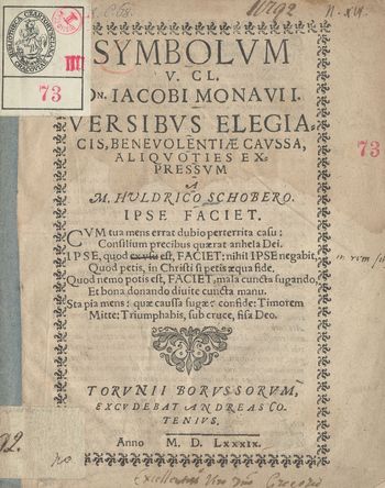 | Inne tytuły: | Symbolum V. CL. Dn. Jacobi Monavii |