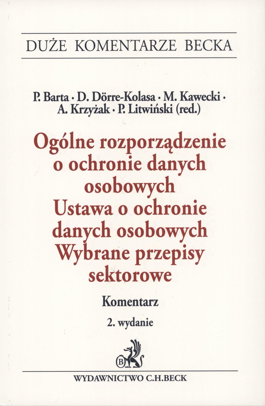 | Inne tytuły: | komentarz wybrane przepisy sektorowe Ustawa o ochronie danych osobowych Duże Komentarze Becka RODO, OchrDanychU, wybrane przepisy sektorowe |