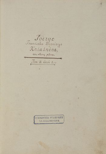 "Poezye Franciszka Dyonizego Kniaźnina ręką własną pisane Tom II"