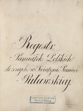 „Regestr pamiątek polskich w Świątyni Pamięci Puławskiey”, spisany przez Franciszka Kozłowskiego, archiwistę puławskiego, przed 1830