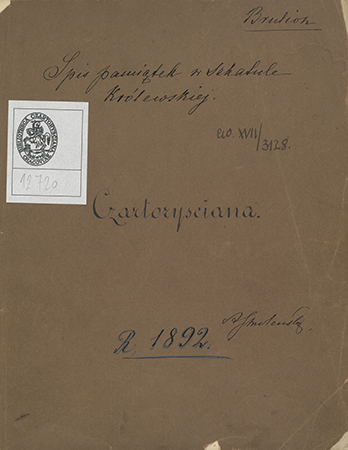 "Spis pamiątek w szkatule królewskiej. Czartorysciana" wykonany przez Adama Smoleńskiego w 1892 r