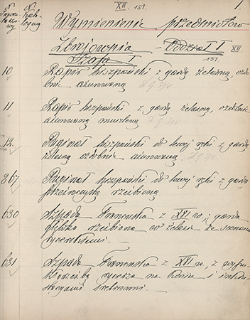 Roman Jodko-Narkiewicz, Katalog przedmiotów muzealnych