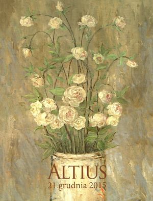 | Inne tytuły: | 21 grudnia 2015 roku, w poniedziałek, godzina 19.00, Dom Aukcyjny Altius w Warszawie [...] wystawa obiektów od 14 grudnia 2015 roku, w godzinach 12.00 - 18.00 w siedzibie D.A. Altius w Warszawie [...] Dwudziesta ósma aukcja dzieł sztuki oraz licytacje na cele charytatywne Fundacji Sue Ryder |
