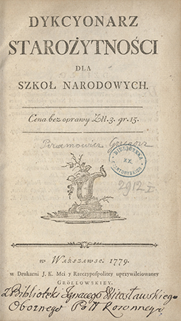 Dykcyonarz Starożytności Dla Szkoł Narodowych / przez Jmć Xiędza Grzegorza Piramowicza ... ułożone